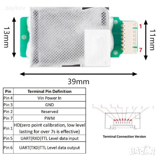 MH-Z19E Инфрачервен сензор за CO2 модул Монитор 400-10000ppm UART PWM, снимка 1 - Друга електроника - 46717495 MH-Z19E Инфрачервен сензор за CO2 модул Монитор 400-10000ppm UART PWM, снимка 2 - Друга електроника - 46717495 MH-Z19E Инфрачервен сензор за CO2 модул Монитор 400-10000ppm UART PWM, снимка 3 - Друга електроника - 46717495 1/3
