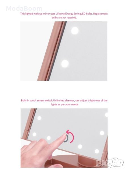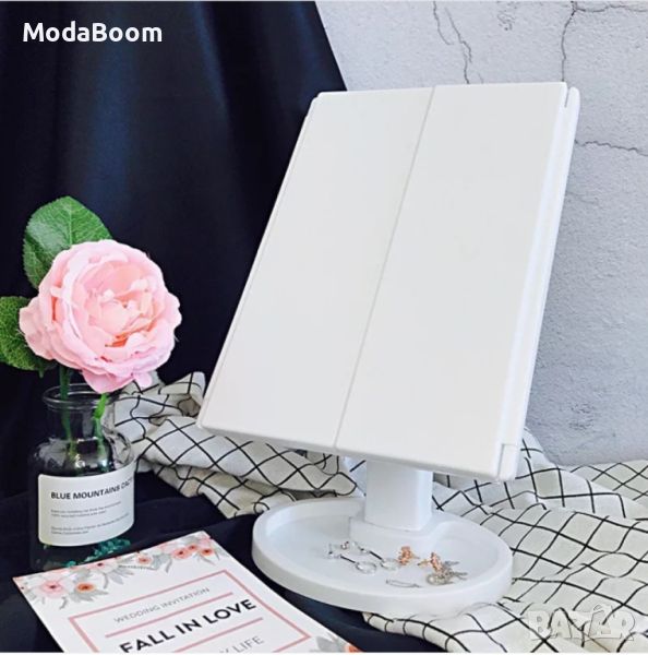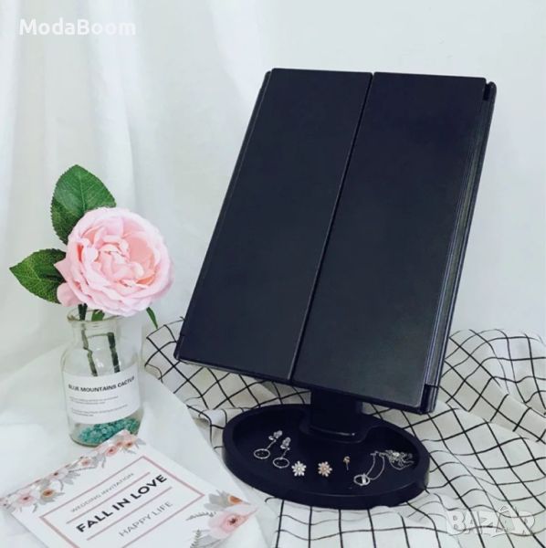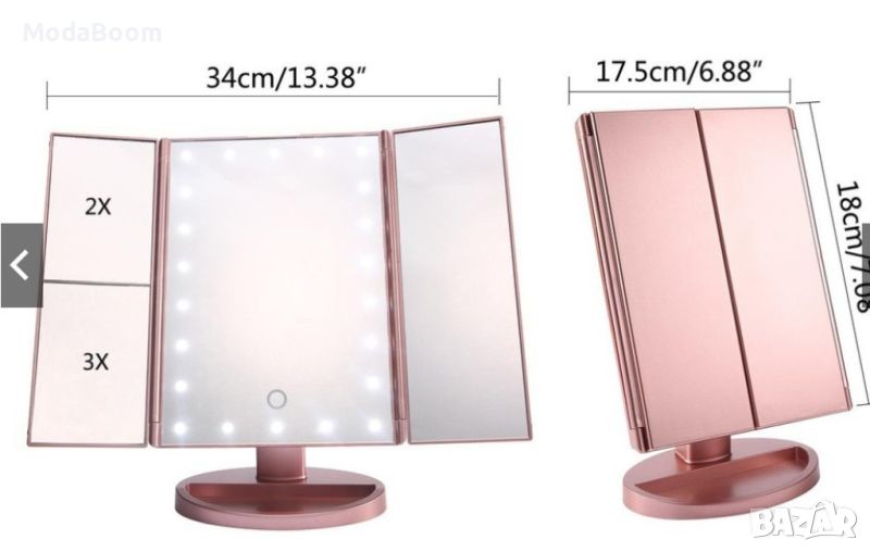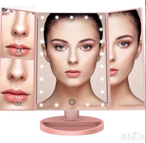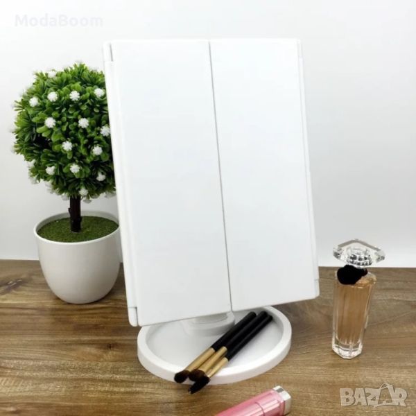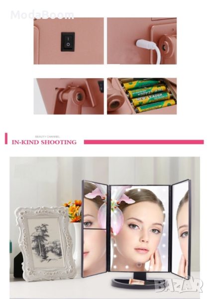 Тристранно сгъваемо огледало в три цвята с вградени Led светлини 4 зони на zoom - цвят: Черен, Бял / Размер при сгънато положение: 18.0 x 24.0 x 2 см; Размер при разгънато положение: 34.5 x 24.0 x 2см; / Режим на захранване: два начина за захранване - захранване с батерия и USB;