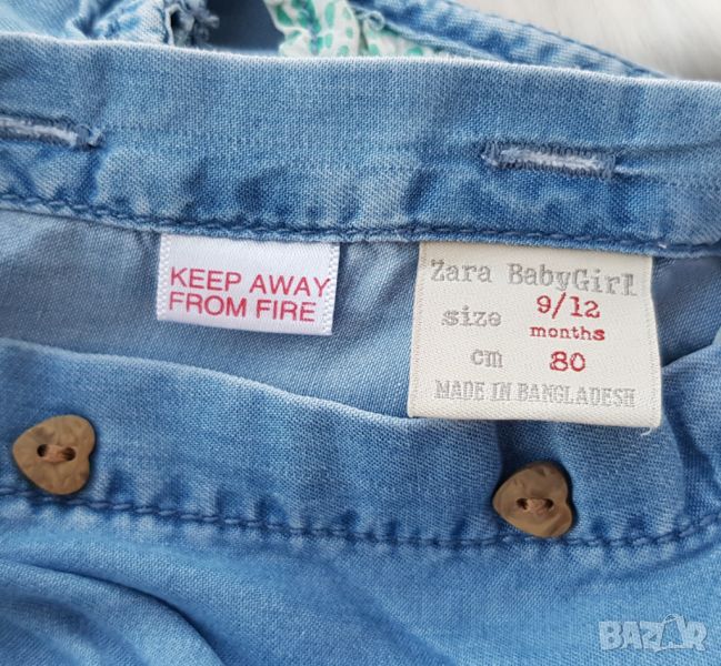 Дънков гащеризон ZARA 9-12 месеца по етикет, според мен е леко умален, по-скоро отговаря за ръст 74см. 6-9 месеца