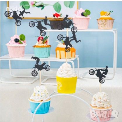 12 бр моторист мотористи мотор топери за мъфини кексчета торта декор украса → Обява 46718850