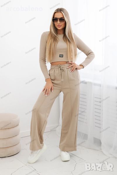 Дамски комплект, състоящ се от рипсирана блуза и панталон с широки крачоли е уникален комплект облекло, което впечатлява както с визия, така и с удобство при носене. Този дамски комплект е изключително модерен и функционален вариант за различни поводи. Характерна особеност на блузата е рипсеният десен, който придава лекота и елегантност. Широките панталони са удобни и ефирни, което ги прави идеални за топлите дни. Имат свободна, ефирна кройка, която ви позволява да се движите свободно. Дамският комплект е чудесен вариант както за ежедневно носене, така и за специални поводи. Освен това, той може да бъде стилизиран по много различни начини, като добавяне на бижута, подходящи обувки и дамска чанта, което прави възможно постигането както на небрежен, така и на елегантен външен вид. Размерът е универсален и ще бъде подходящ за жени с размер S, M или L.