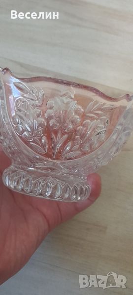 Изключителна купа цветен кристал с релеф изящнна изработка височина 9 см дъно 7 см горе дължина 15 см ширина 11 см