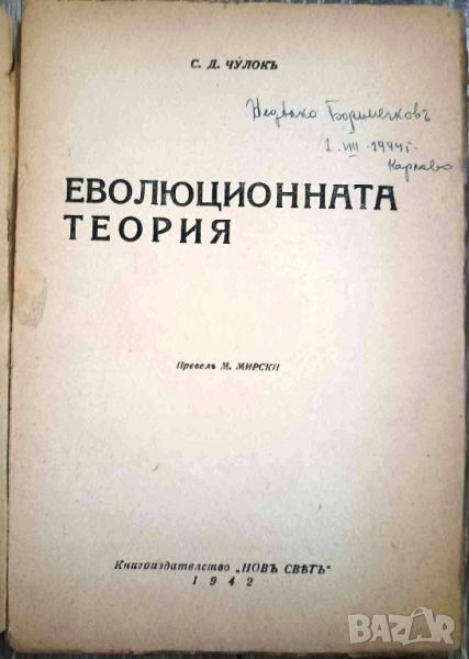 СТАРА КНИГА ЕВОЛЮЦИОННАТА ТЕОРИЯ - С.Д. ЧУЛОКЪ СОФИЯ 1942 → Обява 46720212