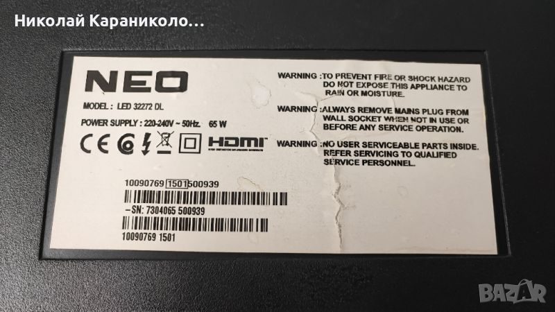 Продавам тв NEO LED32272DL за части по причина-счупена матрица/VES315WNDA-2D-N01/.Редовни съответно: