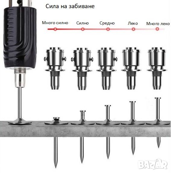 Този продукт ще ви служи за много години. Пет нива на мощност при забиване на пироните