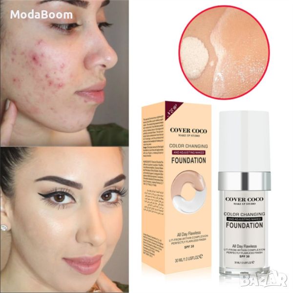 Променящ цвета си покривен течен фон дьо тен със SPF 30. 30 мл.