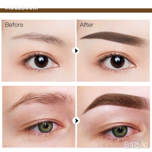 Комплект за оцветяване на веждите с шаблони - Кафяв / Шаблони в комплекта - 24бр;Богата текстура с наситен цвят и кремообразна форма; Накрайник с гъба; Шаблони за оцветяване на веждите в различна форма - 24бр; Естествен цвят; Устойчив на вода и намокряне; Лесен за нанасяне чрез потупване; Може да се използва и за косата в корените или за контуриране на лицето;