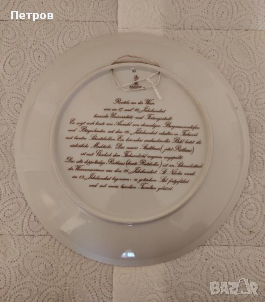 Тази сувенирна чиния е произведена от висококачествен порцелан на известната марка Kaiser и е в отлично състояние. Тя е готова за окачване на стената, с предварително монтирана кукичка за закачане.