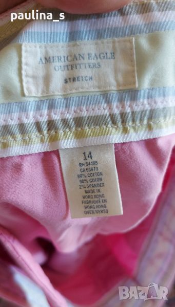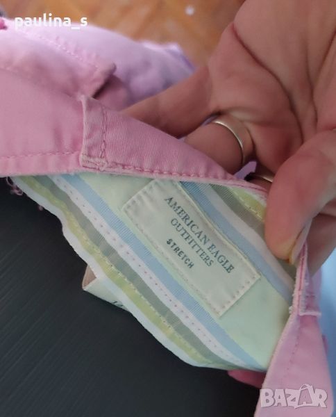 1️⃣. Колаж / L / 2XL - "American eagle" outfitters. Цената е крайна 24,99лв. Еластични летни дънкови бермуди в млечно розово. Брандирани копчета, бродирано лого, странични ленти и оригинални гайки; просто са уникални. Една бройка, става за посочените размери, вижте мерките!