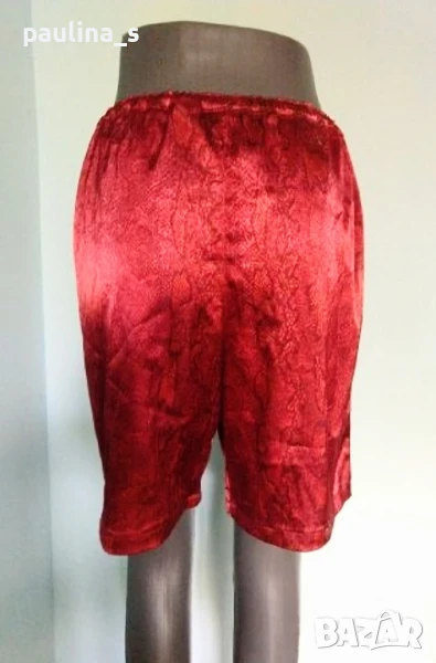 2️⃣. Колаж / XL / 3XL - Червени сатенени бермуди, ръчна изработка. Цената е крайна 24,99лв. Еластични сатенени бермуди. Платът е в змийски принт , ръчна изработка. Моделът е по Burda, добра изработка и зачистени с оверлог, облечени на подходящия размер са много ефектна дреха, манекенът е размер S. Уникални са. Материята е с голяма еластичност и покрива няколко размера. Нови, не са обичани, освен на манекен.