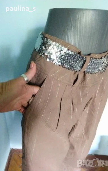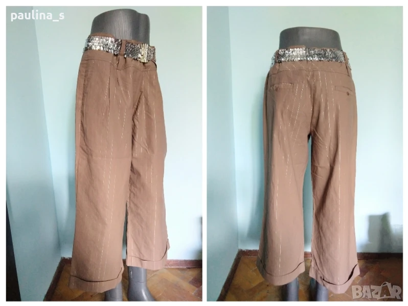 3️⃣. Колаж / Копринен панталон "Pepper corn" с широки крачоли и колан. Цената е крайна 29,99лв. Копринен панталон с широки крачоли и коси джобове, двойни гайки и басти. Крачолите са с маншет, отзад има джобове на филетки с копчета, цветът е нюд - телесен. Материята е копринена тафта. Много ефектна дреха, за повод. Коланът се продава на цена от 9,99лв. Не се делят!