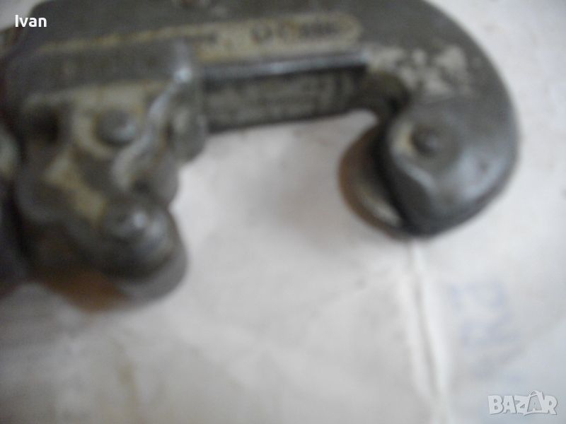 Масивен, изцяло от алумииний.В отлично техническо състояние.Реже добре.Няма назъбвания по режещите колела.Резбата на въртока движи и държи добре.С оосвобождаващ нож за почистване на среза на отрязаната тръба.