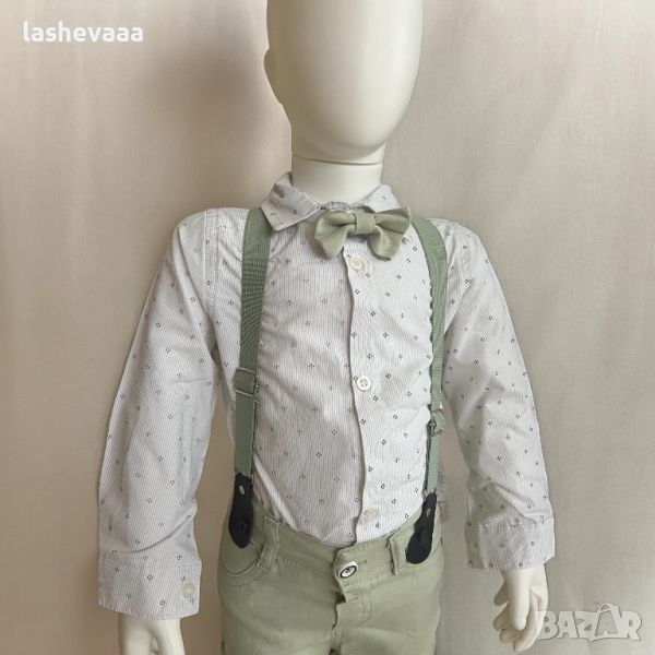 ✅Комплекта включва - боди/риза с дълъг ръкав, панталон, тиранти и папийонка