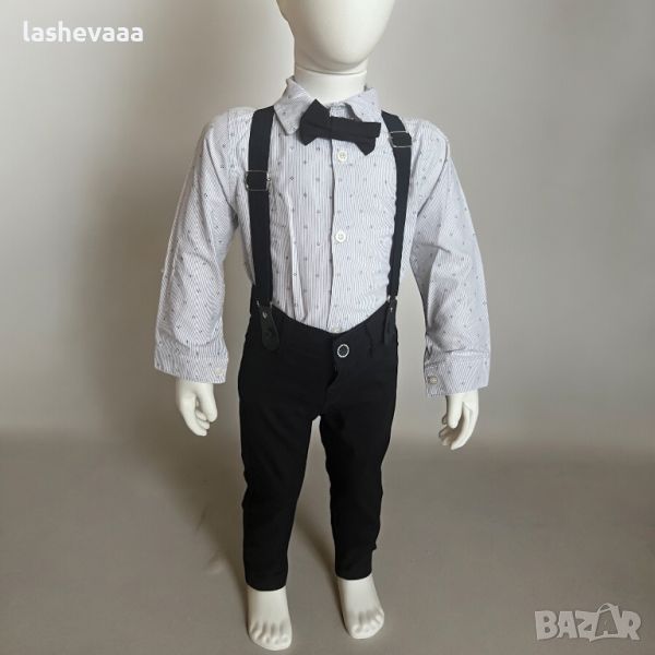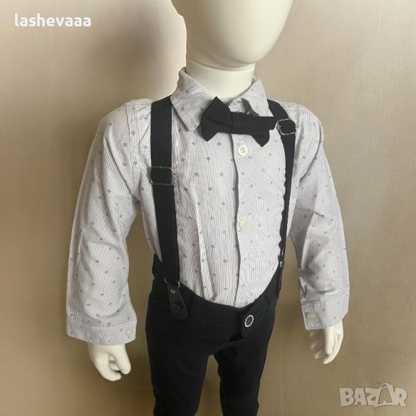 ✅Комплекта включва - боди/риза с дълъг ръкав, панталон, тиранти и папийонка