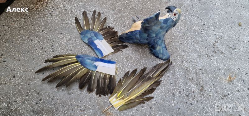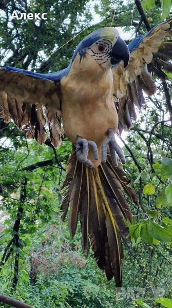 Отлично състояние!Папагала е разкошен на живо!Силен акцент за градина или заведение!Подвижни крила и опашка, изработени с велкро./ последна снимка/Компактен за пращане.Цялостна дължина: 62смЦялостна ширина, размах на крилете: 77смМатериал: естествени пераЦената е крайна!
