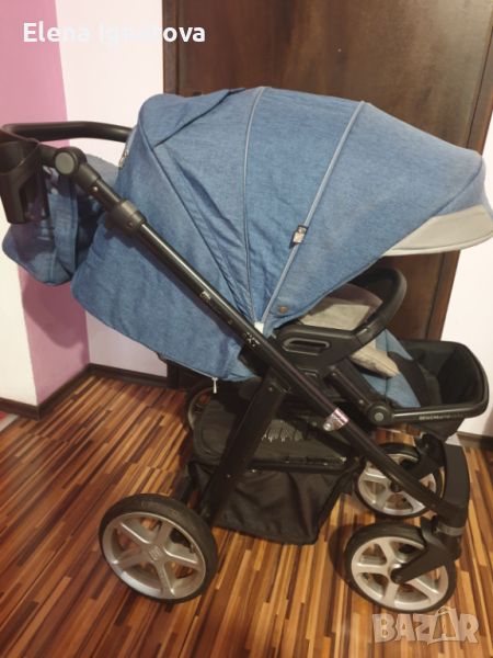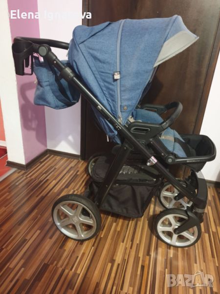 Количката е използвана активно година и половина, оттогава седи прибрана. Кошът за новородено (последната снимка) е използван само 2 месеца, напълно като нов е. Всичко в комплекта е абсолютно здраво, без никакви счупени или повредени места и механизми, нормални следи от употреба. Количката е отлична със страхотен уникален цвят на дънково синьо, изключително маневрена и удобна както за детето, така и за този , който я бута :)