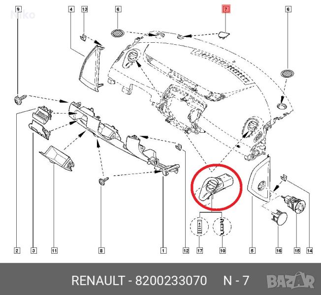 вентилационна решетка за вътрешни панели RENAULT SCENIC II