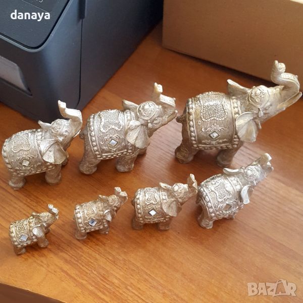 слончета различни по големина. Фън Шуй статуетки 7 слона – слон и слоница с 5 малки слончета. Изработени от полистоун. Слонът е символ на мъдрост, сила и власт. Много ефективен талисман за бизнеса. Прекрасен подарък за семейство, за нов дом, за рожден ден, годишнина, коледен подарък и т.н.