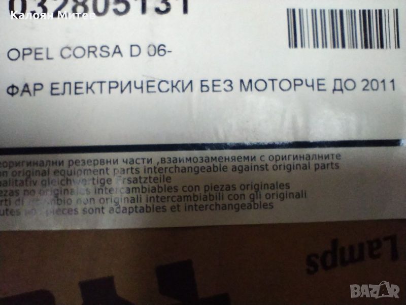 32805131 ; НОВ - Алтернативен десен фар ( механично регулиране) ,Опел Корса до 2011 → Обява 46732134