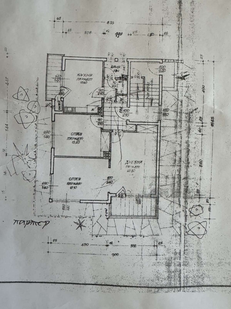 Представлява апартамент с 5 стаи и се състои от коридор, дневна стая, отделна кухня с трапезария, две спални, още една стая, баня с тоалетна, втора тоалетна и голяма тераса. Има възможност за преустройства и съединяване на помещения. Прилагам старо архитектурно разпределение, на което апартаментът е 108кв. м. След усвояване на част от терасата и ново заснемане от МАПЕКС апартаментът вече е 132кв. м. Извършен е освежителен ремонт. Има прилежащо избено помещение 19кв. м.