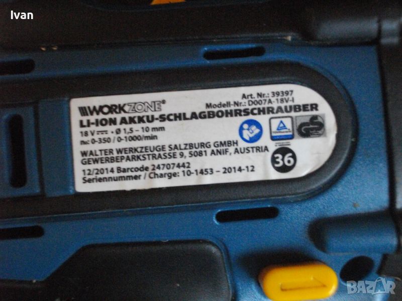 Австрийско оригинално производство. Марка и модел-Workzone Li-ion D007A.