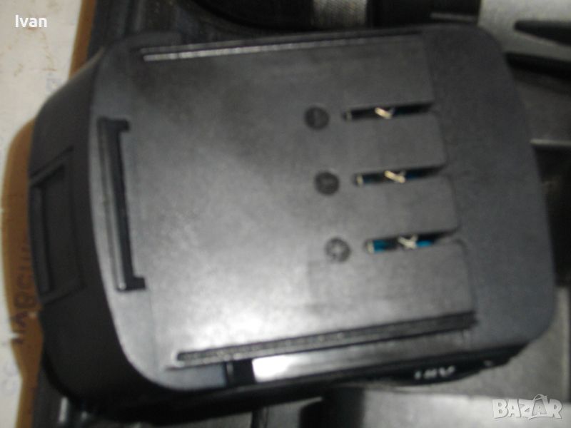 НА КОМПЛЕКТА БАТЕРИЯТА СЕ ЗАРЕЖДА ДОБРЕ - СИЛНА И МОЩНА Е, ДЪРЖИ СИЛЕН ЗАРЯД. БОДИТО РАБОТИ, НО НА МОМЕНТИ ПРИ ПРЕХВЪРЛЯНЕ НА ФУНКЦИИТЕ - УДАР - ПРОБИВ, ЗАПОЧВА ДА БУКСУВА. ЛИПСВА АДАПТЕР КЪМ КУТИЯТА НА ЗАРЯДНОТО.