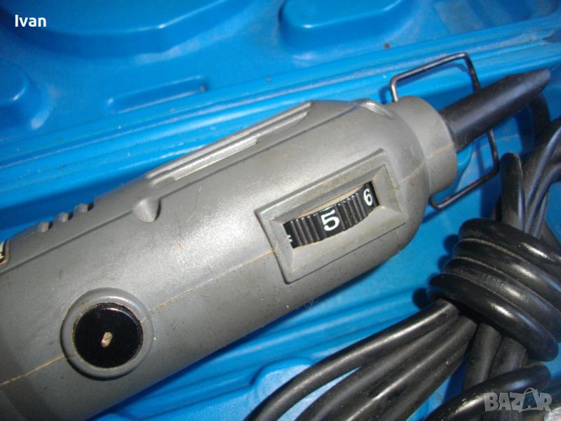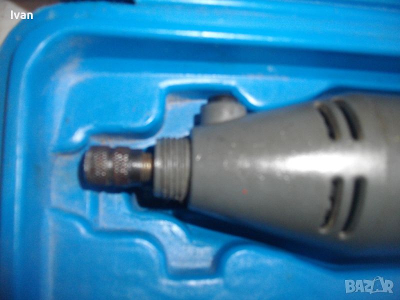 ОПИСАНИЕ на ел.мини дрелка- шлифовалка в сн куфар - 159 лв. Холандска професионална, производство на холандски производител само на профи инструменти - KINZO. Марка и модел - TROVEX MBM 130. Производство - 20003 г. Ползвана, със запазен външен вид и отлично работно състояние. Без забележки. Мощност на мотора - 130 вата, скорост регулируема с 7 степени - 8000-30000 об/мин. Четки външни. Цанга, гайка, за аксесоари опашка диаметър ф 4 мм. Към машината е налична оригиналната стойка стяга за захват към работна маса и оригиналната тлескопична тръба за окачнане на машината. Наличие на оригиналния твърд пластмасов куфар на марката, с характерния за KINZO син цвят. ЗАБЕЛЕЖКА - едната копчалка на куфара е откъсната ,но другата държи здраво и стабилно куфара затворен Тегло на всичко - 2,0 кг.