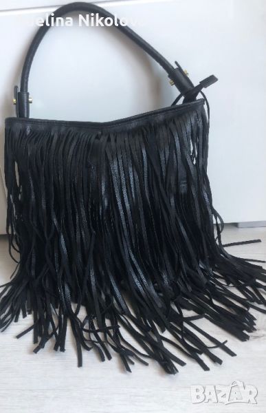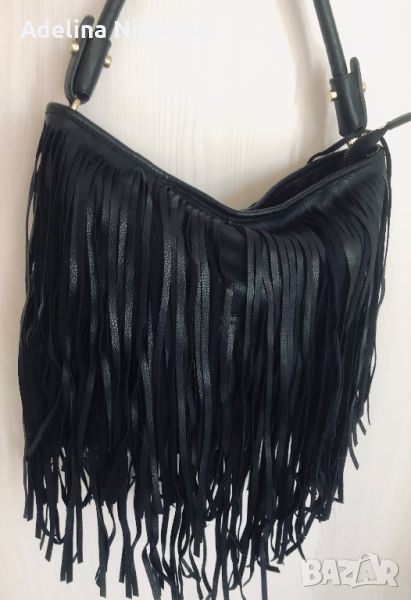Черна чанта с ресни H&M- 1 отделение, 1 вътрешен джоб с цип, шириина 32см, височина 29, дължина дръжка 45 см - 19лв