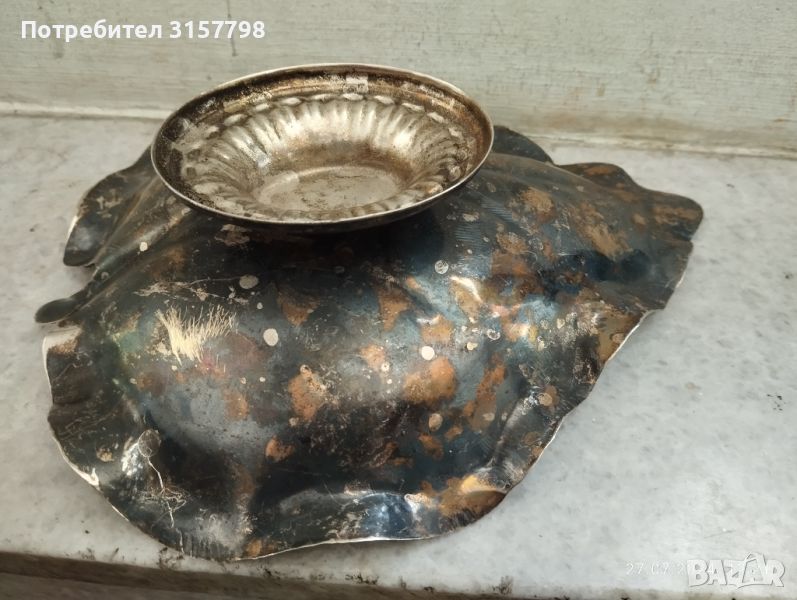 Посребрена купа арт деко-дъбов лист → Обява 46734371