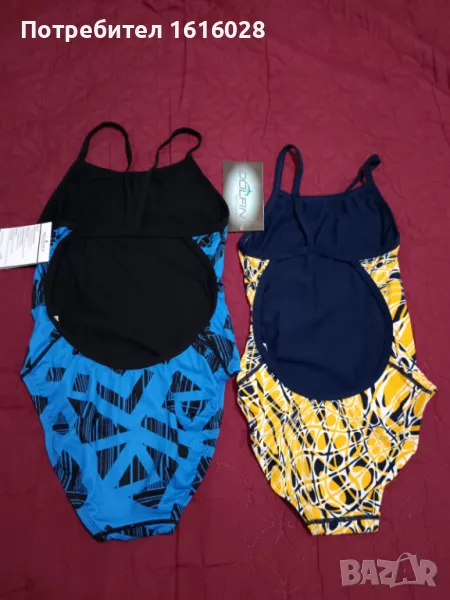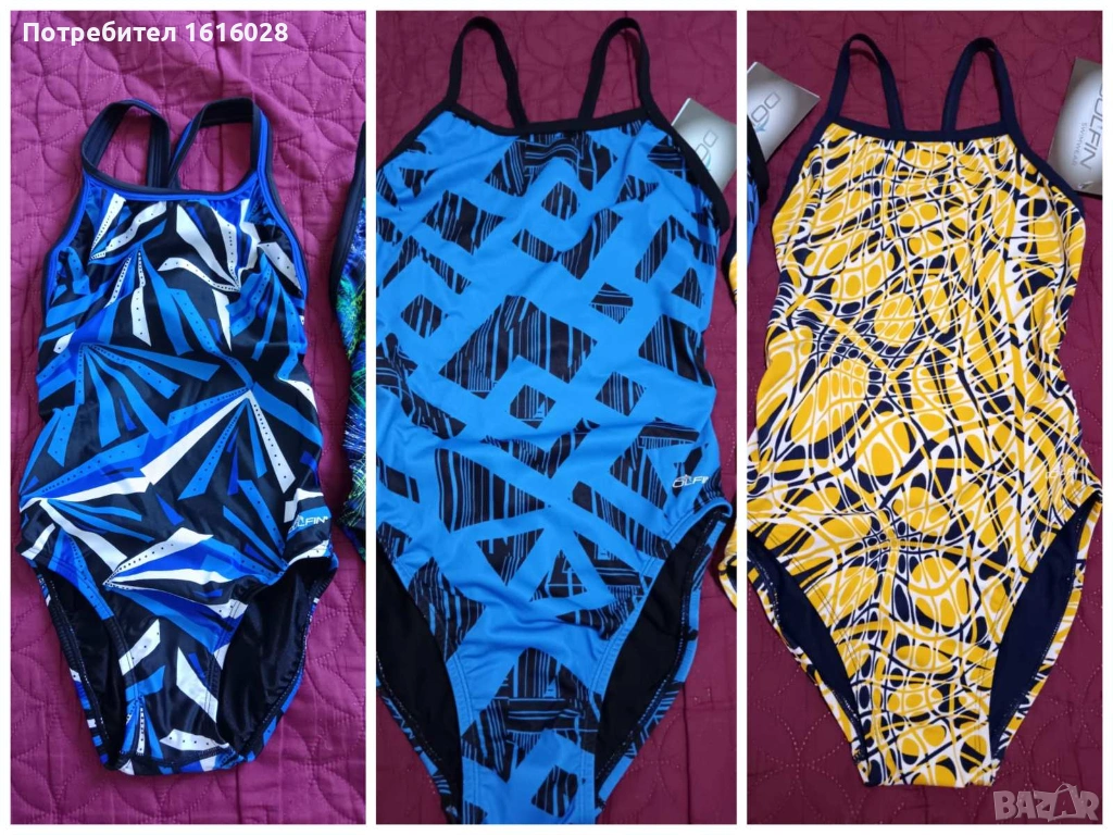 Цели бански костюми DOLFIN UPF50+ за момиче 9 - 14 г. Чисто нови.Банските са със страхотен дизайн и от качествена разтеглива материя в двете посоки,с вътрешен хастар от елестична черна непрозрачна материя.Подходящи за плаж както и за плувци в басейн.Три различни модела и цветове.Размерите са мерени без да е разтегнат банския,които имат доста голяма еластичност.Подходящи за деца до 40 кг. и височина на детето между 122 и 146 см.