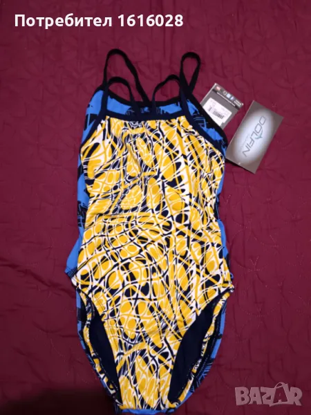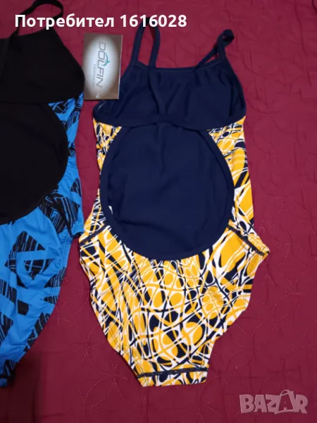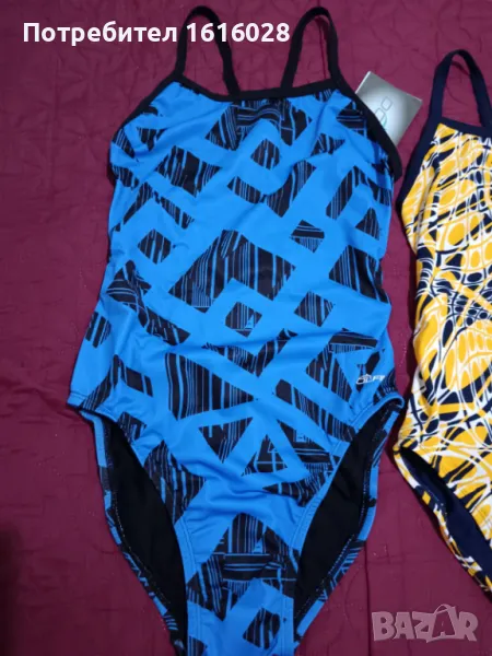 2.Жълто-черен бански размер 26 - шир.под мишници 28 см. в обиколка 56 см.шир.в ханш 28 см.в обиколка 56 см. Дъл.60 см. от рамо до четал.Налични 2 броя.Цена 16 лв.