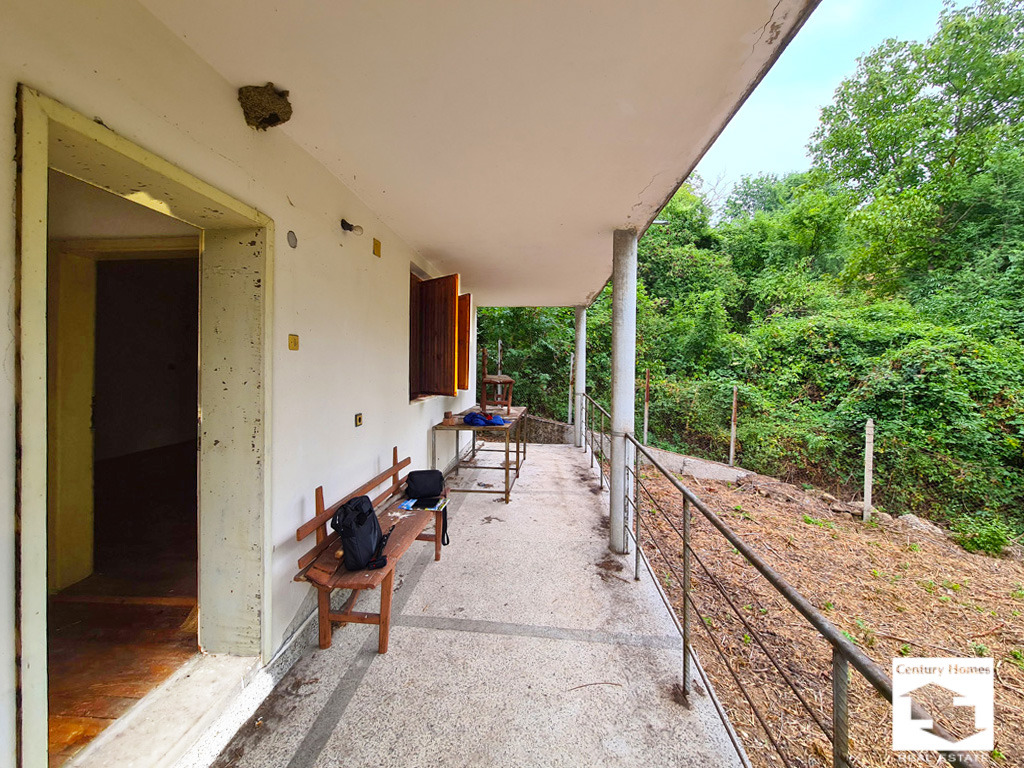 Първата къща е двуетажна и тухлена, готова за обитаване. Обхваща 98 кв.м. жилищна площ, а нейното разпределение включва входно антре, отворена концепция кухня и трапезария, дневна и баня на първия етаж. Посредством външно стълбище се стига до вторият етаж, където са разположени две спални, коридор и панорамна тераса. Тази къща е необзаведена, с дървена подова настилка, измазани стени и дървени врати и прозорци.Изложението е южно, а имотът разполага с електричество и вода от кладенеца в двора. Тоалетната е външна.