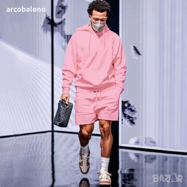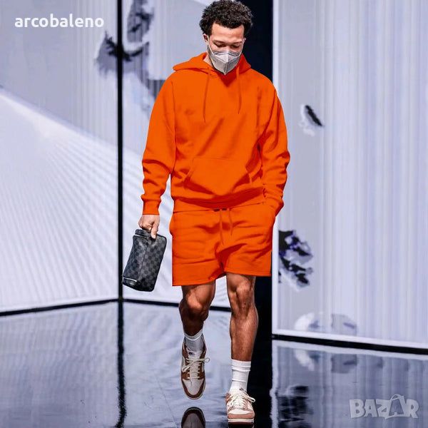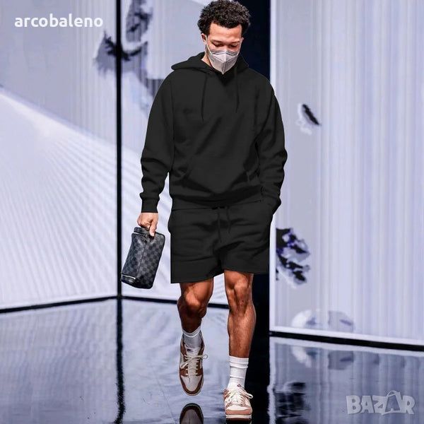 Ежедневен мъжки свободен комплект от две части суичър с качулка от полар, 5цвята