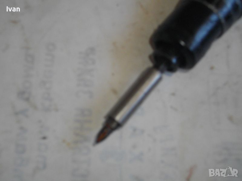 Поставен на машината адаптер дълъг 6 мм за битове накрайници. Поставен къс кръстат бит на адаптера.