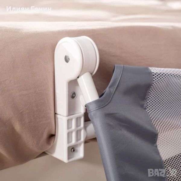 Сгъваема и переща се: Благодарение на практичната панта с бутон, защитата от падане може лесно да се сгъне и прибере, за да спести място, ако е необходимо. Здравият плат се сваля и пере.