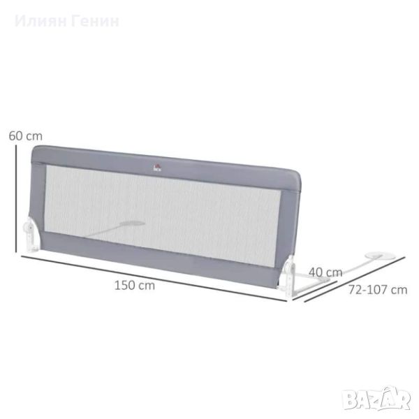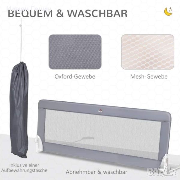 HOMCOM предпазител за легло, стоманен, сгъваем, перещ се плат, за деца 1,5-5 години, сив, 150 x 40 x 60 см - 50.00лв.