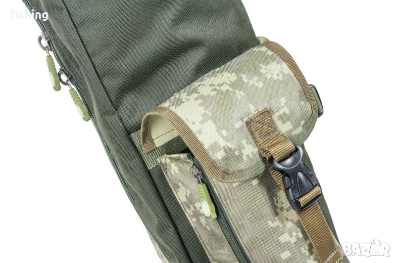 Луксозен и просторен калъф за въдици, който ще поеме 4 пръта с макари. Четири подсилени джоба на макарата и добре подплатена транспортна каишка са на лице в Mivardi Rod holdall CamoCODE Compact. Има два външни джоба с различна дължина за кеп, колчета и други аксесоари. Произведен от B-POL600D и 750D, той е едновременно издръжлив, миещ се и, както бихте очаквали от Mivardi, строго тестван.