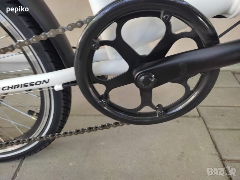 НОВ двойно сгъваем велосипед CHRISSON FOLDO 20 цола,олекотена стоманена рамка 20 цола с 6 скорости,фиксирани превключватели SHIMANO TOURNEY 6,средно движение касета,алуминиеви курбели,алуминиеви сгъваеми педали,заден отклонител SHIMANO TOURNEY,задни венци SHIMANO MF-TZ20-6,алуминиев багажник,пластмасови калници,никелирано колче на седалката,удобна седалка на релси,алуминиево сгъваемо колче на кормилото,алуминиево кормило,предна и задна вибрейк спирачки,алуминиеви двойностенни усилени капли,никелирани спици,алуминиеви лостчета на спирачките,алуминиева степенка,гуми с безшумен грайфер 20 х 1,95,осветление от пред и от зад електронно,размер на рамката 31 х 54 см.тегло 14,9 кг.