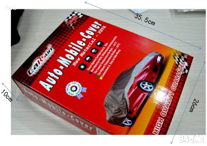 Продуктът пасва на различни модели, можете да изберете размер, според габаритите на Вашето превозно средство. Предлаганите размери започват от S и достигат XXL за най-големите машини. Изделието може да се използва и за предпазване от натрупване на прах, дори и когато колата в гараж.