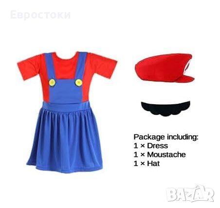 Дамски костюм Super Mario, дамски карнавален костюм Супер Марио с рокля, шапка и мустаци, размер: М