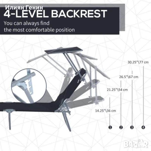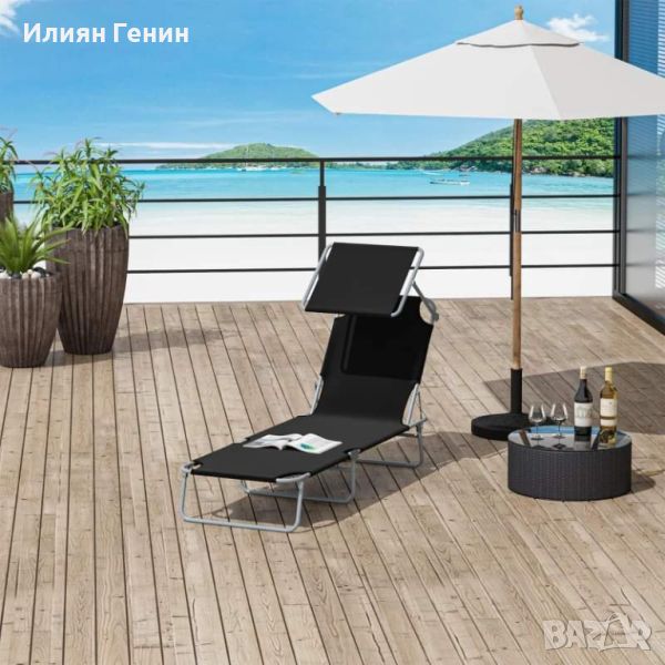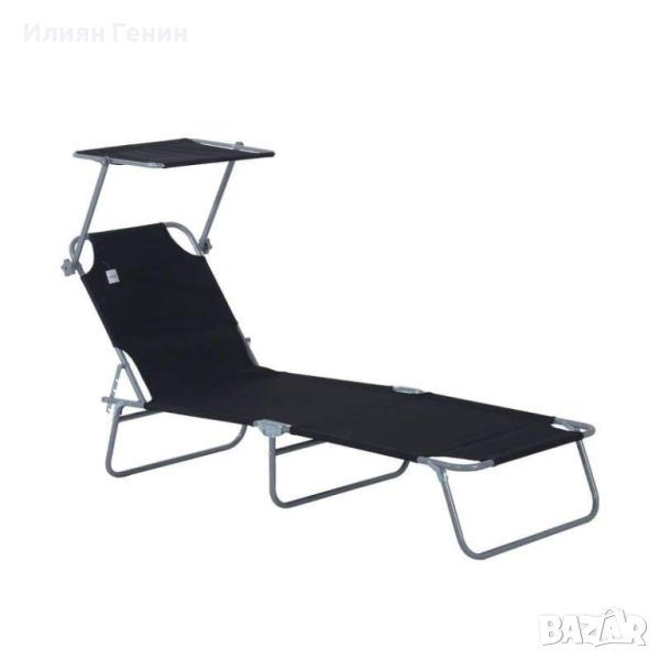 шезлонг, 4 нива, регулируема облегалка, накланящ се шезлонг с тента за сенник за плаж, градина, вътрешен двор, черен - 150.00лв.