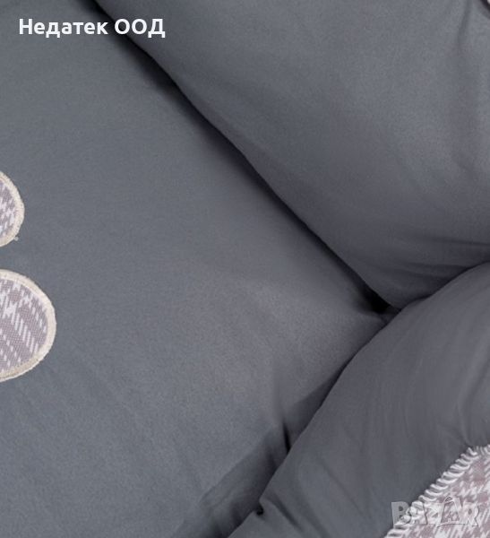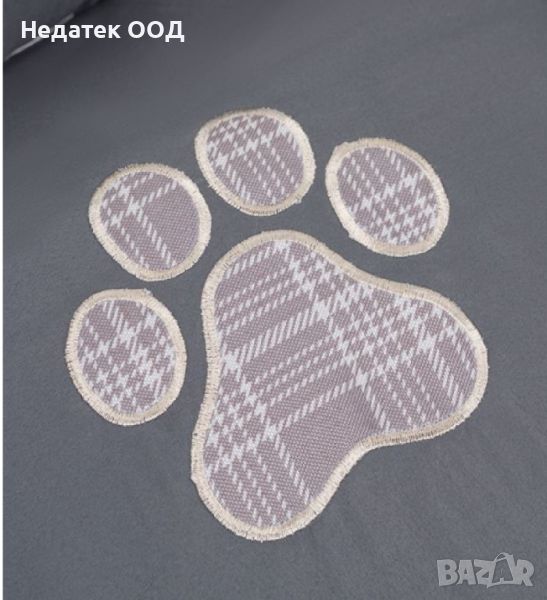 Легло за куче правоъгълно, с мека сива вътрешна страна с шарка на лапи и сива карирана външна страна. Има неплъзгащо се дъно. Подходящ за използване на закрито.