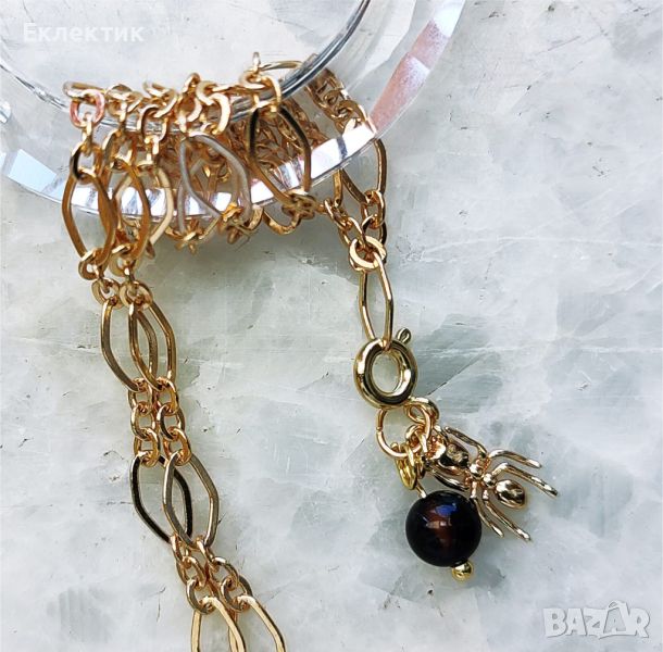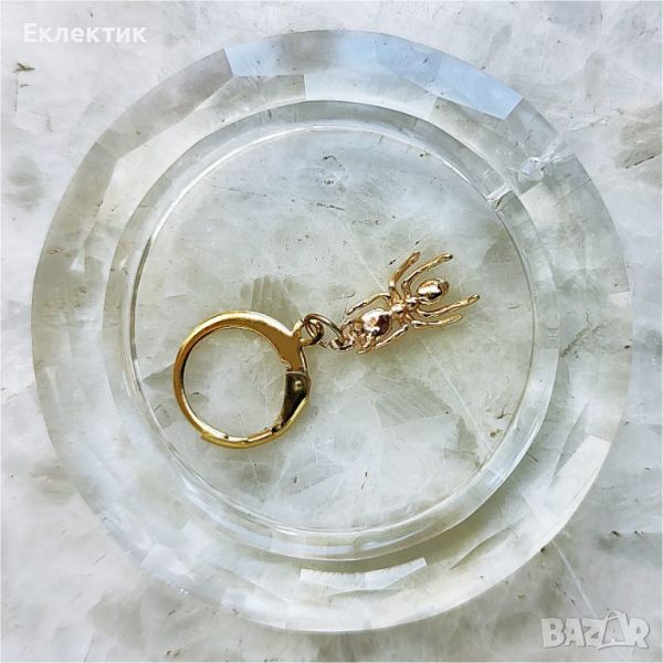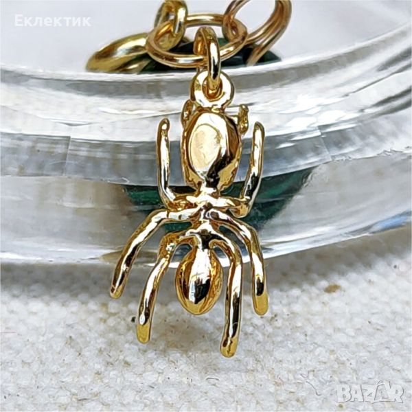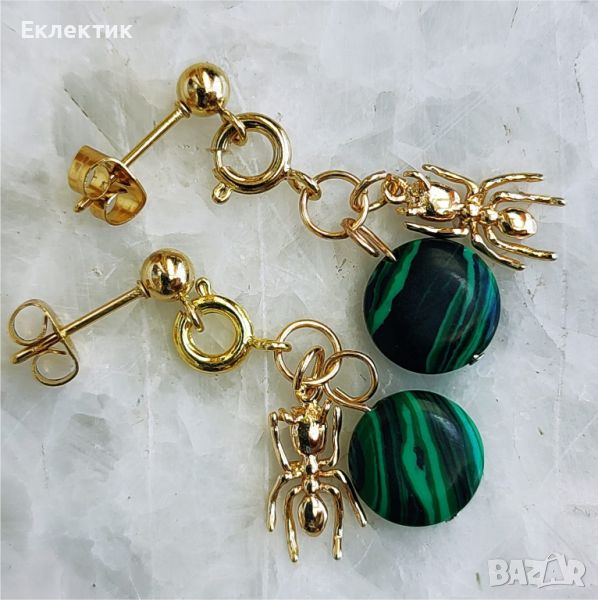 Тези обеци са с талисмани, състоящи се от позлатено паяче и скъпоценен камък. Талисманите могат лесно да се