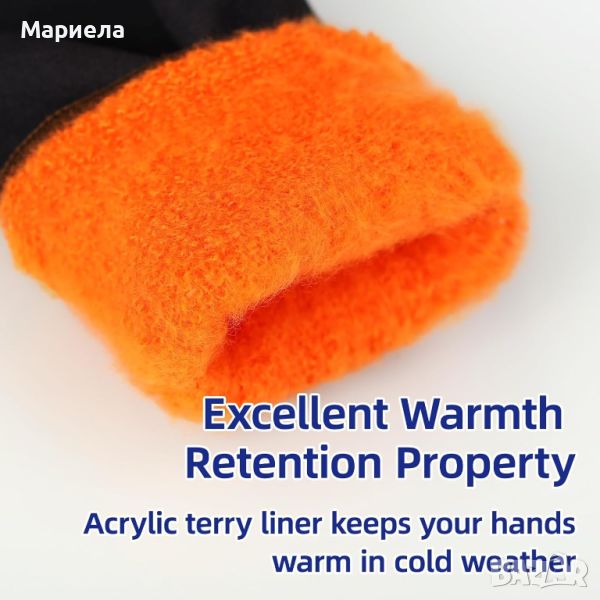 Яркият оранжев цвят ви позволява да бъдете забелязани и в безопасност. Тези топли работни ръкавици са идеални за разнообразна работа на закрито и на открито, като фугиране или мокър трион, почистване/осоляване на сняг, работа с коритата за вода, почистване на снега, шофиране, градинарство, битки със снежни топки, каране на ски, работа на открито и др.