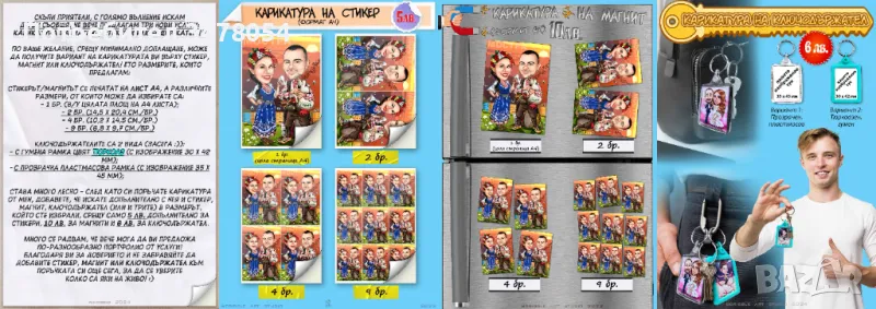 Също така, предлагам допълнително стикери, магнити и ключодържатели с карикатурата Ви (или просто като услуга с ваш файл). Пишете за повече информация!