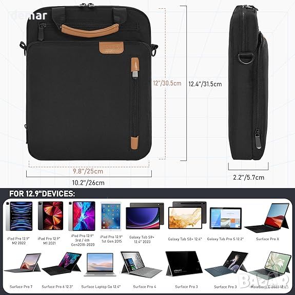 Калъфът за пренасяне на iPad, изработен от първокласна полиестерна тъкан, предлага изключителна водоустойчивост, свойства против износване и разкъсване. Разполага с висококачествени ципове, презрамки и мека подплата за допълнителна защита и комфорт на устройството. Този калъф пасва на 12,9" устройства, включително различни модели iPad Pro, Surface Pro и Galaxy Tab. Подплатеното основно отделение и независимата удебелена подплата предпазват вашето устройство от надраскване, докато предният джоб с цип и допълнителните джобове съхраняват дребни предмети и устройства за зареждане. С удобна дръжка от PU кожа и подвижна презрамка, той е перфектен за работа, пътуване и ежедневна употреба, той лесно се побира в раница или куфарче, като гарантира, че вашето устройство е винаги защитено и под ръка.