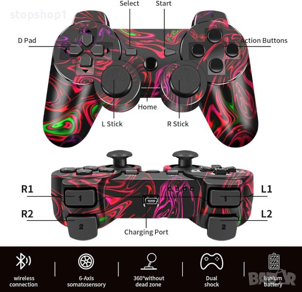 Безжичен контролер с дизайн във формата на светкавица, контролер Play3, безжичен контролер Play3, геймпад Double Shock за P3