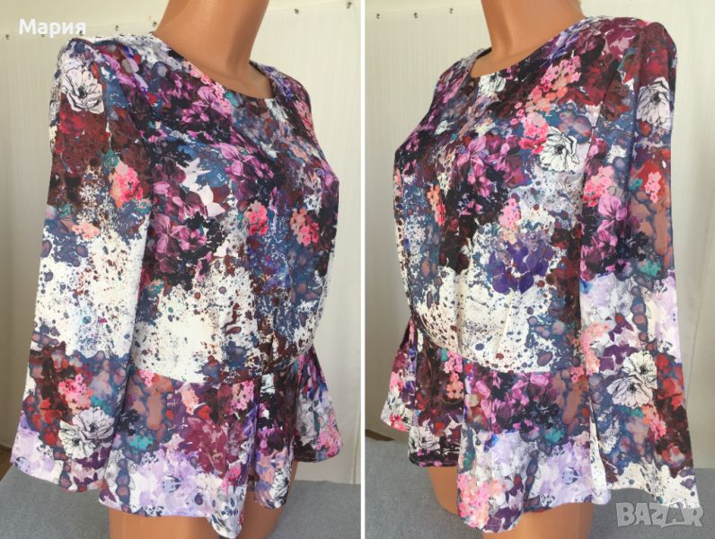 40 М Дамска Блуза H&M на Цветя Официална Ежедневна Флорални Мотиви Шарена Бяла Лилава Синя Розова → Обява 46745646