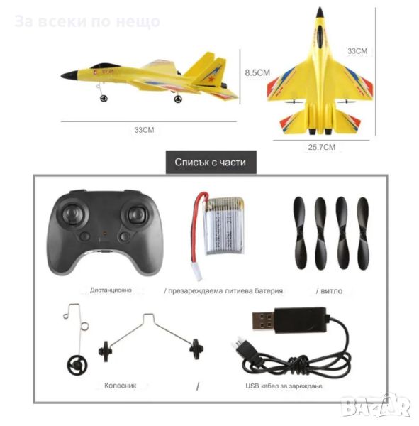 С нашия Ултра-реалистичен радиоуправляем реактивен самолет SU-27 ще изпитате истинското вълнение от полетите и ще се насладите на часове незабравимо забавление. Направете своята поръчка сега и се подгответе за въздушни приключения като никога досега!