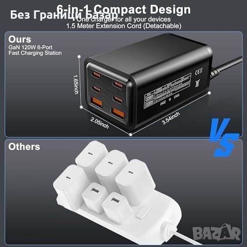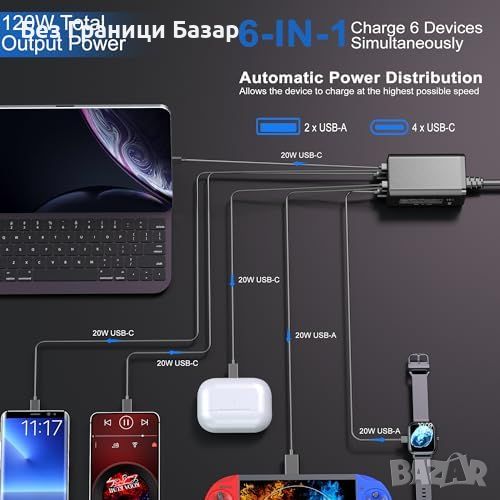 Мощност: 120W с 4 USB-C и 2 USB-A порта.
